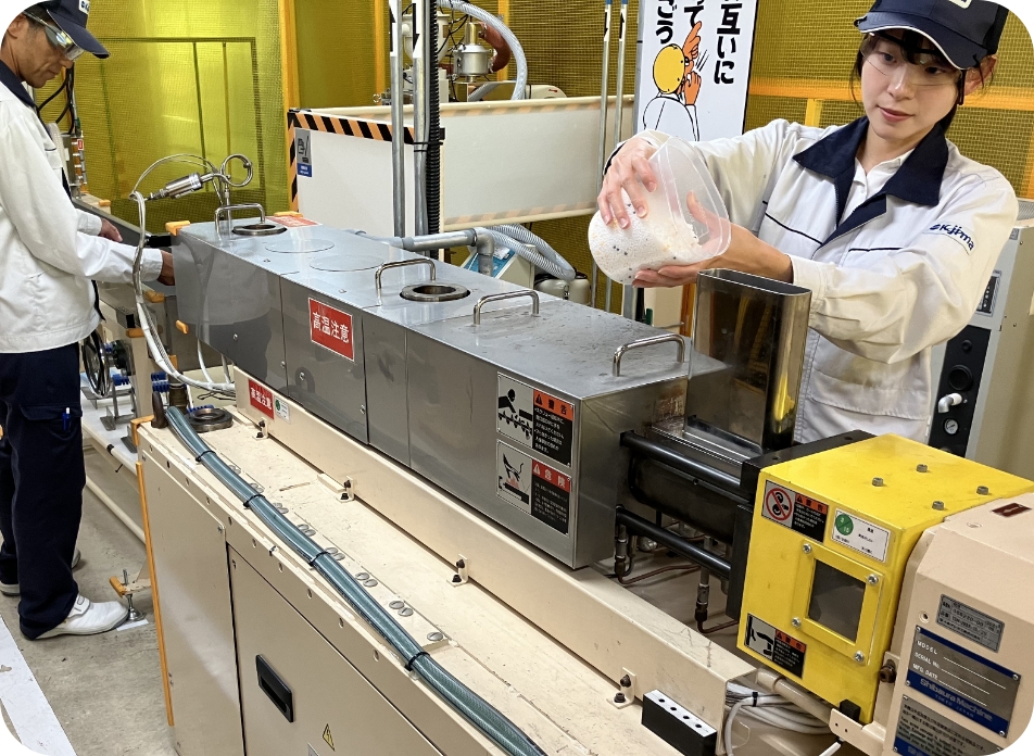 廃車由来プラスチック残渣の物性回復を目指す枠組みに参画。名古屋大学や自動車メーカー、設備メーカーと共同でリサイクル技術の開発を進めています。