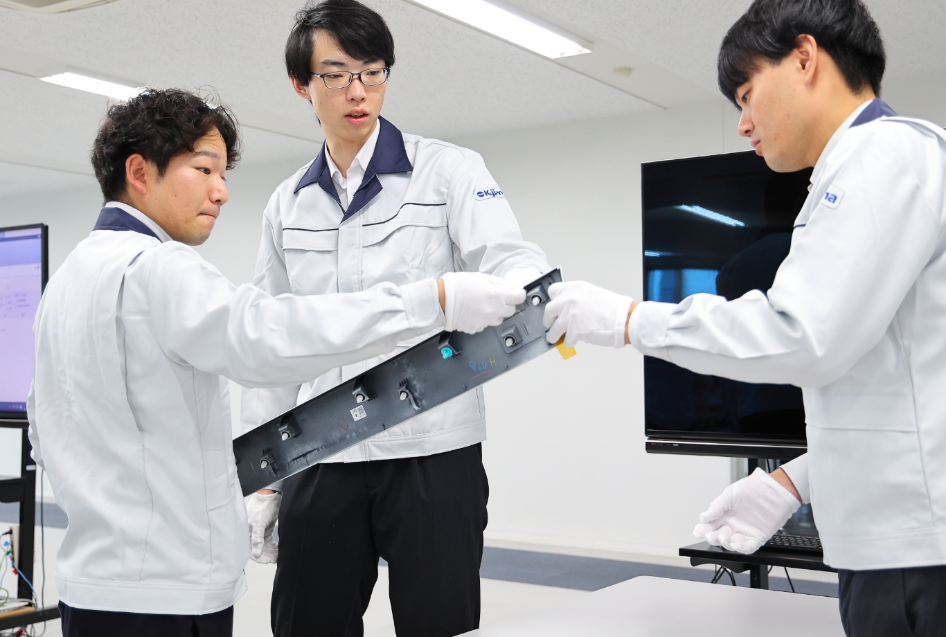 互いに協力し合い仕事を回す。広 浜 所属する品質管理は、車の品質を決める部署です。設計が形を作り、それを解析したものが部品化できるかを判断していく。そのための細かな測定や様々な調整などもする必要があります。